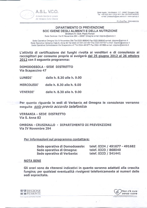 | Descrizione | ATTIVITA' DI CERTIFICAZIONE DEI FUNGHI |