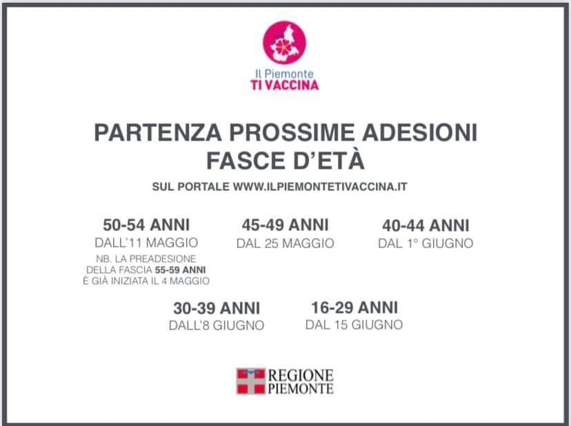 IL PIEMONTE TI VACCINA - PROSSIME ADESIONI